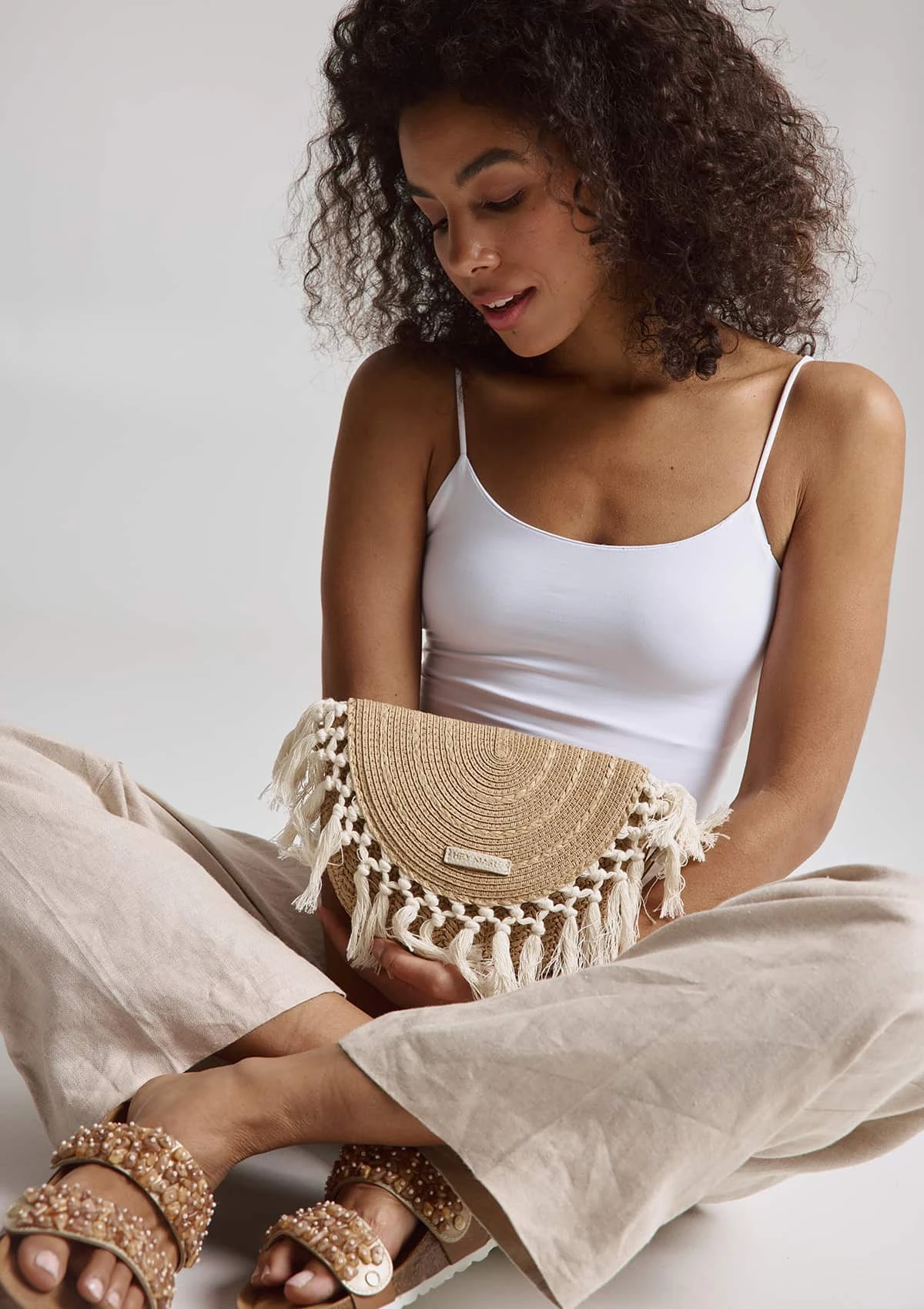 Die Fransendetails unterstreichen den laessigen, sommerlichen Look, waehrend die Tasche durch ihre leichte & flexible Verarbeitung ideal fuer sonnige Tage ist.